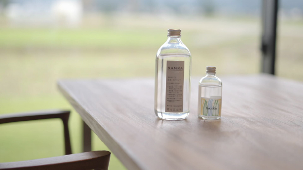 糸魚川産の杉材を製材した際に生じたチップ(いわゆるC材)や枝葉をベースに、隣町・小谷村で採れた朴葉(ほおば)をブレンド。ジュニパーベリーとベチバーが杉の香りを引き立たせまるで森林浴をしているかのようなひとときを演出します。